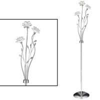 The Bellis chrome 3 light floor lamp with clear flower glass and leaf decoration makes an attractive feature in any corner of your home. The ornate design is intricately finished in chrome and glass, and the three flowers create a beautiful lighting effect for your bedroom, living room or dining room.