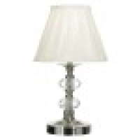 The HAZEL Touch Table Lamp has a polished chrome base with clear faceted decoration and white tapered shade.