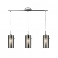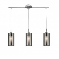 DUO 2 CHROME 3 LIGHT BAR PENDANT WITH SMOKED GLASS CYLINDER SHADES