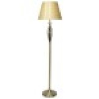 The BYBLISS Floor Lamp has an antique brass base with open metal work decoration and gold shade.