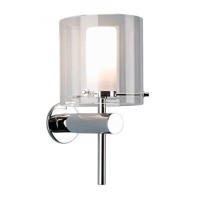 IP44 rated Chrome Bathroom wall light fitting with A clear glass shade.