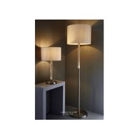 Andromeda Floor lamp - Satin chrome, clear acrylic with bubbles LED base with white cotton mix shade.