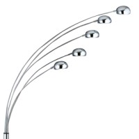 This Chrome Giraffe 5 light floor lamp is inspired by modern Italian design, with dome shaped, metal shades and stylish chrome finish. The marble base provides a solid foundation for the extravagant arc leading to the five chrome dome shades. The artistic elements provide an interesting focal point so you can transform any dull space into a light and attractive area.