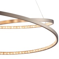 Contemporary LED ceiling pendant with a striking continuous loop of LED lights diffused through K5 crystals. Perfect for modern interiors and plated in a sophisticated matt nickel finish. Seemingly the pendant "floats", suspended from subtle clear cables that are height adjustable. The impressive loop design is an amazing centrepiece to any interior, creating an striking light effect.